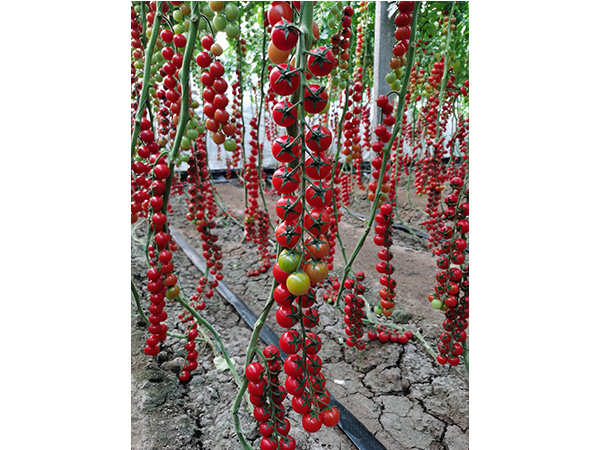 植株长势强,果实圆形,果重约23g,果色亮红,糖度约9度,果硬不裂果,可单采或成串采收,耐储运,货架期长,单穗约17果,产量高。