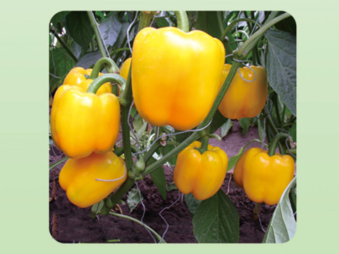 杂交一代,植株长势中等,早熟,高产,耐热,果实大小均匀,整齐度好,果长8-10cm,果径8-10cm,单果重230克,果色亮黄,适合拱棚、日光温室越夏种植。